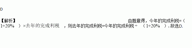 华光服装厂今年完成利税2400万元,比去年增加20%,求去年完成利税多少万元,正确列式的是( )