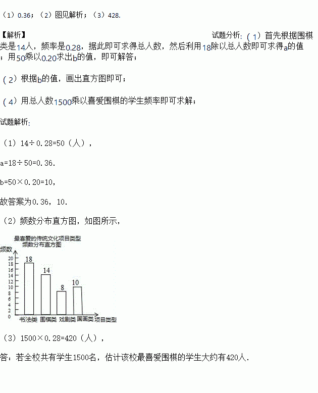 (3)若全校共有学生1500名,估计该校最喜爱围棋的学生大约有多少人?