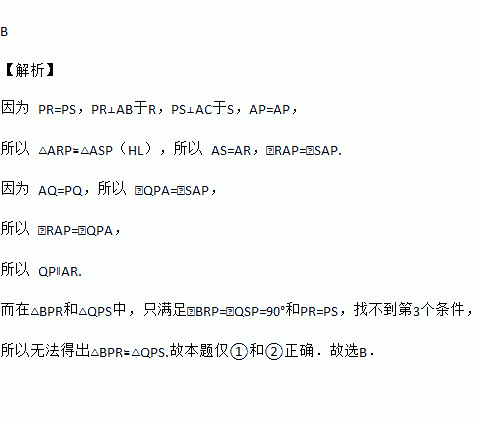 如图,在△ABC中,AQ=PQ,PR=PS,PR⊥AB于R,PS⊥AC于S,则三个结论:①AS=AR,②QP∥AR,③△BPR≌△QPS中一定正确的是( )