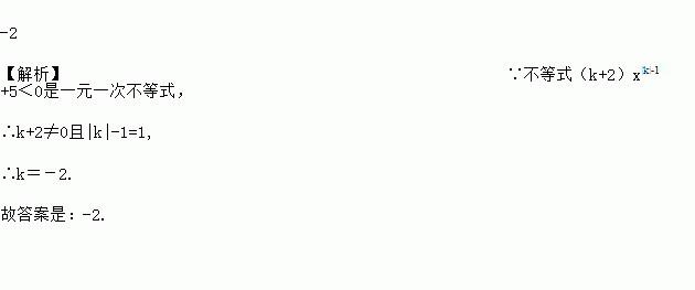 当k____时,不等式(k+2)x|k|-1+5<0是一元一次不等式.