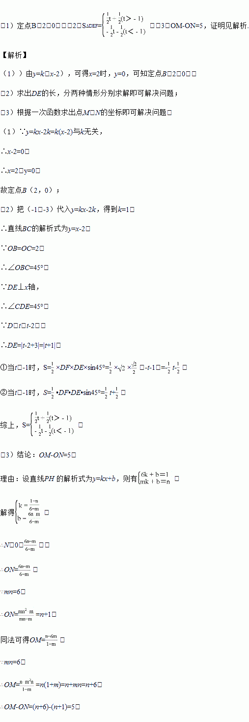已知点C(0,-2),直线l:y=kx-2k无论k取何值,直线总过定点B,