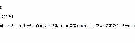 在下图中,正确画出AC边上高的是( )