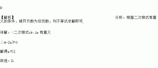 A. a>2 B. a≥2 C. a< 2 D. a≤2