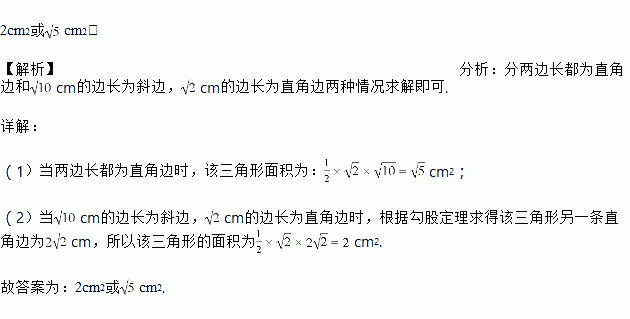 直角三角形的两边长分别为则此三角形的面积为____________.