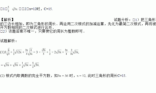 (2)请你给一个适当的x值,使它的周长为整数,并求出此时三角形周长的值
