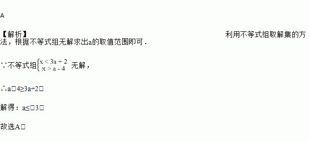 A. a≤﹣3 B. a<﹣3 C. a>3 D. a≥3
