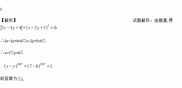 1 【解析】试题解析:由题意,得 ∴2x?3y+4=0,x?2y+5=0, ∴x=7,y=6, 故答案为:1.