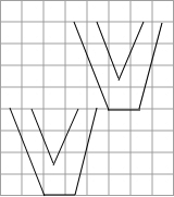 如图所示,将方格纸中的图形向左平行移动3格,再向下平行移动4格,画出平行移动后的图形。