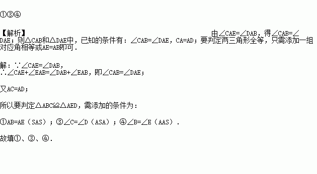 如图,已知,给出下列条件:①;②;③;④,其中能使的条件为