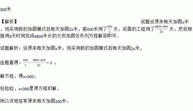 通过这段对话,请你求出该地驻军原来每天加固多少米?