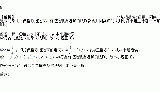 (2011•黑河)下列各式:①a0=1;②a2•a3=a5;③2﹣2=﹣