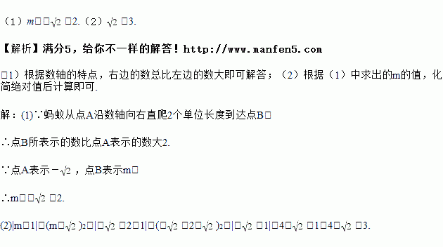 如图,一只蚂蚁从点A沿数轴向右直爬2个单位长度到达点B,点A表示-,设点B所表示的数为m.