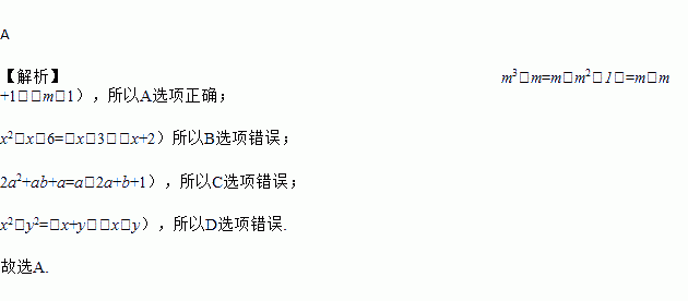 A. m3-m=m(m-1)(m+1) B. x2-x-6=x(x-1)-6 C. 2a2+ab+a=a(2a+b) D. x2-y2=(x-y)2