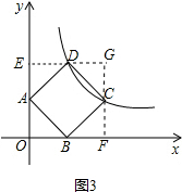 (3)作DE⊥y轴于E,CF⊥x轴于F,ED、FC交与G,设OA=BF=CG=DE=a,OB=FC=GD=EA=b,根据k的几何意义,求出a和b之间的关系,即判断出OA和OB等量关系,再结合正方形的面积求出OA、OB的长.
