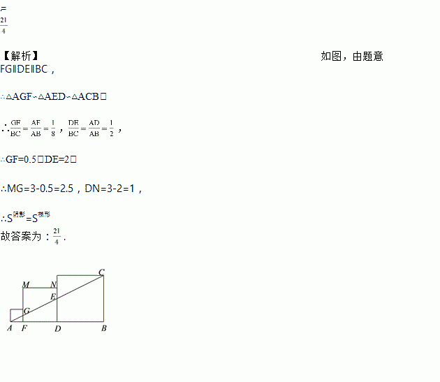 如图,三个正方形的边长分别为1,3,4,则图中阴影部分的面积为______________。