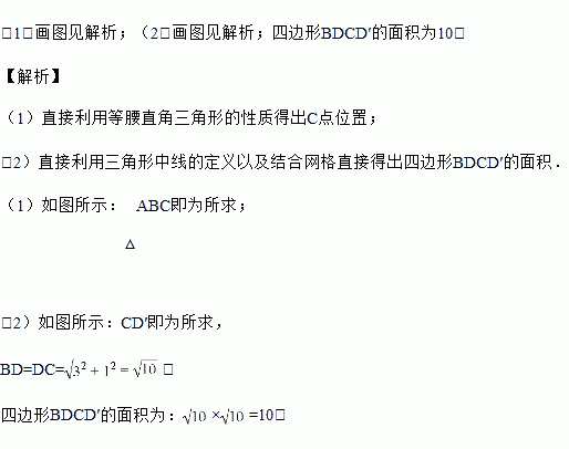 (2)在方格纸中画出△ABC的中线BD,将线段DC绕点C顺时针旋转90°得到线段CD′,画出旋转后的线段CD′,连接BD′,直接写出四边形BDCD′的面积.