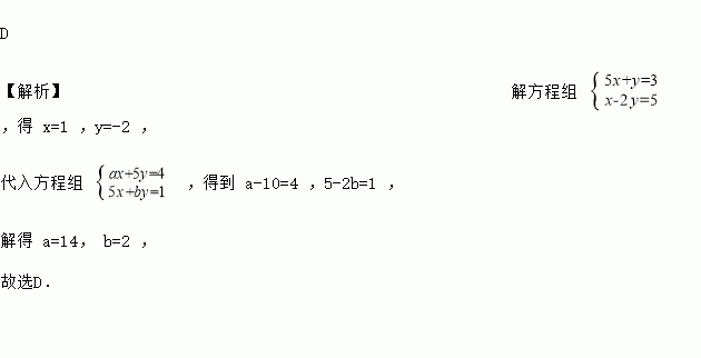 已知方程组和有相同的解,则,的值为 ( )
