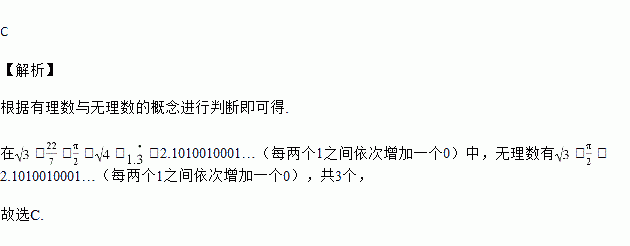 在,,,,,2.1010010001…(每两个1之间依次增加一个0)中,无理数有( )