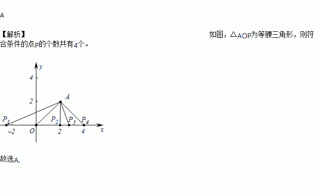 在直角坐标系中,O为坐标原点,已知A(2,2),在x轴上确定点P,使△AOP为等腰三角形,则符合条件的点P的个数共有( )