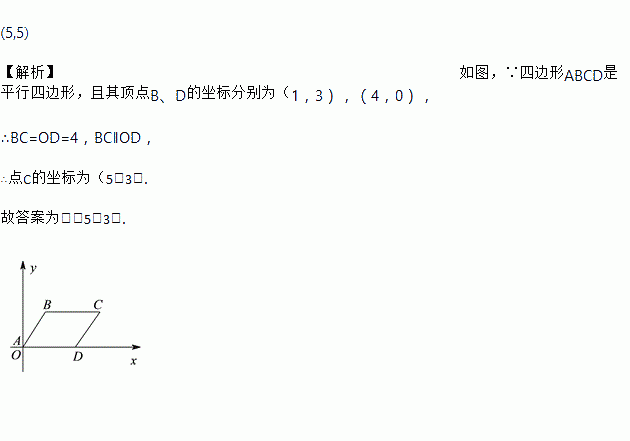 以平行四边形ABCD的顶点A为原点,直线AD为x轴建立平面直角坐标系,已知点B,D的坐标分别为(1,3),(4,0),把平行四边形向上平移2个单位长度,则C点平移后相应的点的坐标是_____.