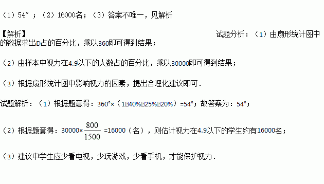 (3)根据扇形统计图信息,你觉得中学生应该如何保护视力?