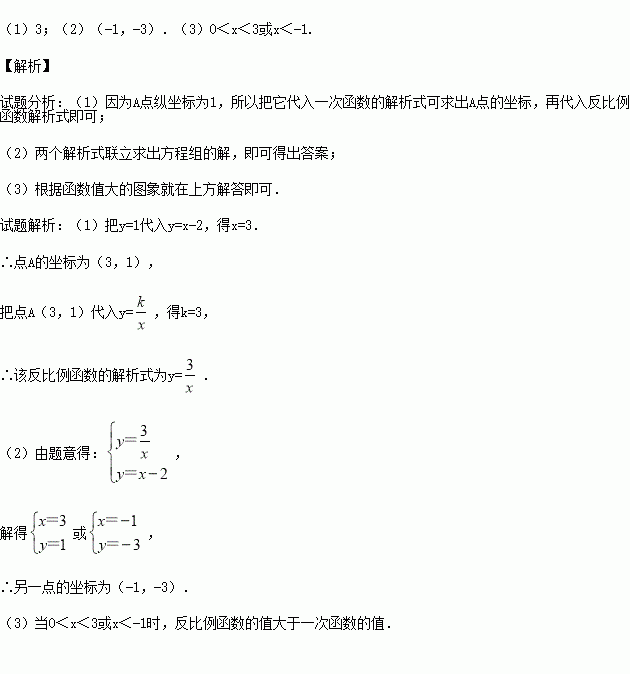 的图象与直线y=x-2的交点,且A点纵坐标为1.