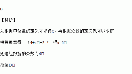 一组数据从小到大排列为1,2,4,x,6,8.这组数据的中位数是5,那么这组数据的众数为( )