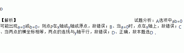 A. 若ab=0,则点P(a,b)表示原点