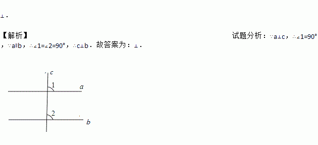 若直线a∥b,a⊥c,则直线b c.