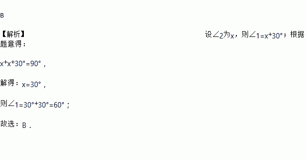 将一副三角板按如图方式摆放在一起,且∠1比∠2大30°,则∠1的度数等于( )