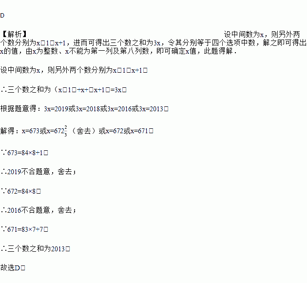 平移表中带阴影的方框,方框中三个数的和可能是( )