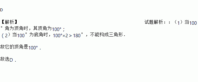 已知等腰三角形的一个角是100°,则它的顶角是( )