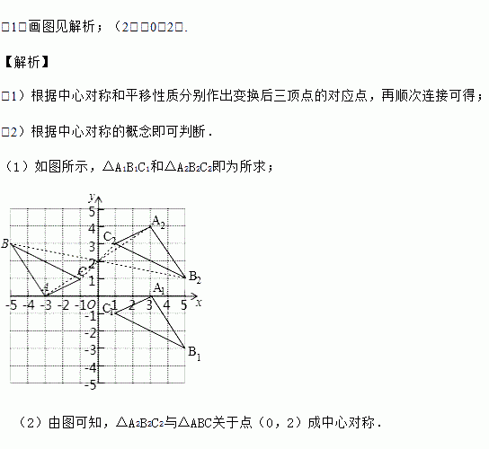 £¨2£©¡÷A2B2C2Óë¡÷ABCÊÇ·ñ¹ØÓÚijµã³ÉÖÐÐĶԳƣ¿ÈôÊÇ£¬Ö±½Óд³ö¶Ô³ÆÖÐÐĵÄ×ø±ê£»Èô²»ÊÇ£¬Çë˵Ã÷ÀíÓÉ.