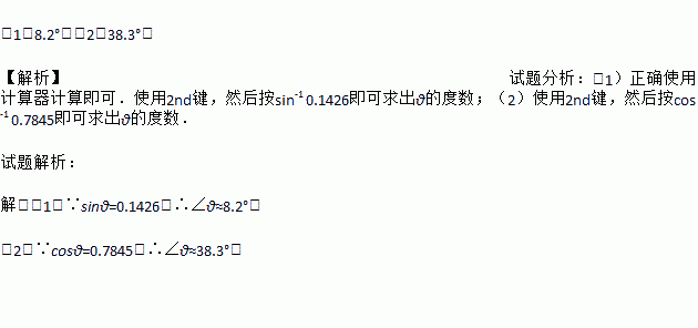 求满足下列条件的锐角θ的度数(精确到0.1°):