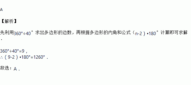 一个多边形的每一个外角都等于40°,那么这个多边形的内角和为( )