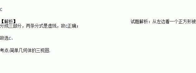 一个铁制零件(正方体中间挖去一个圆柱形孔)如图放置,它的左视图是( )