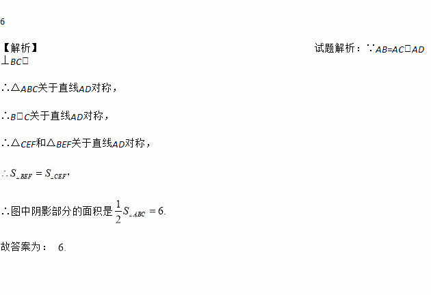 如图,在△ABC中,AB=AC,AD⊥BC于点D,点E,F为AD上的两点,若△ABC的面积为12,则图中阴影部分的面积是________.