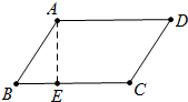 2.顺次连接A、B.C,D得到平行四边形ABCD,已知AB=4,BC=6,∠B=60°.则此平行四边形面积是12$\sqrt{3}$.分析 作AE⊥BC于E,根据S平行四边形ABCD=BC•AE,先求出AE即可求解.