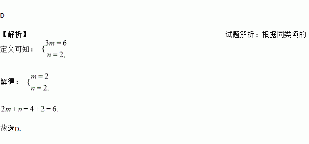 已知和是同类项,那么2m+n的值( )