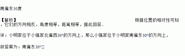 小明家位于小强家北偏西30º的方向上,那么小强家位于小明家_________的方向上.