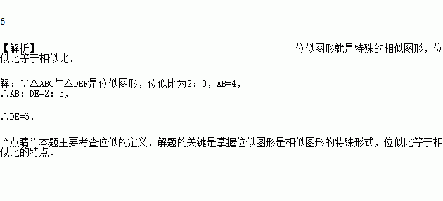 如图,△与△是位似图形,相似比为2∶3,已知=4,则的长为______.