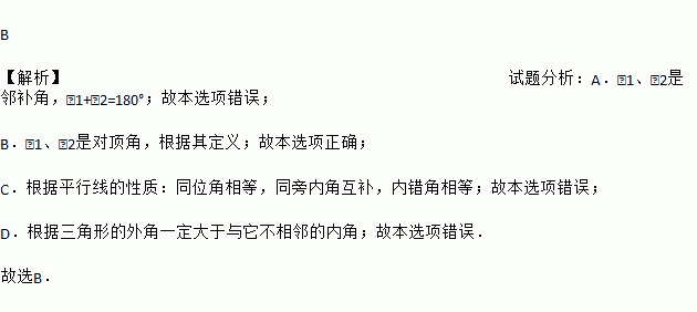下面四个图形中,∠1=∠2一定成立的是( )