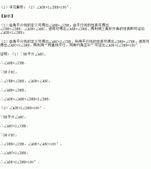 在△ABC中,点D在边BA或BA的延长线上,过点D作DE∥BC,交∠ABC的角平分线于点E.