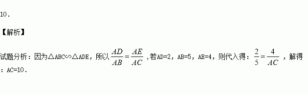 如图,已知△ABC∽△ADE,若AD=2,AB=5,AE=4,则AC=____.