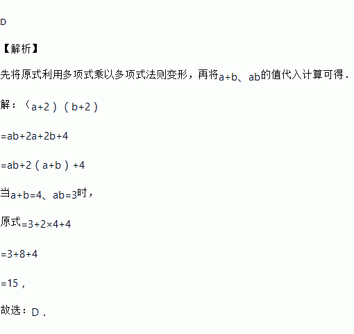 已知a+b=4,ab=3,则代数式(a+2)(b+2)的值是( )