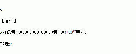 A. 3×1014美元 B. 3×1013美元 C. 3×1012美元 D. 3×1011美元