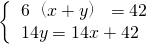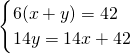 解答:根据甲走6小时的路程+乙走6小时的路程=42,得方程6(x+y)=42;