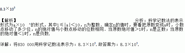 国家统计局的相关数据显示,2017年我国国民生产总值约为830 000亿元,用科学记数法表示830 000是________.