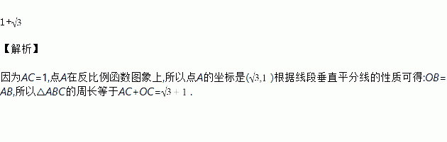 如图,点A在双曲线上,过点A作AC⊥x轴,垂足为C,OA的垂直平分线交OC于点B,当AC=1时,△ABC的周长为 .