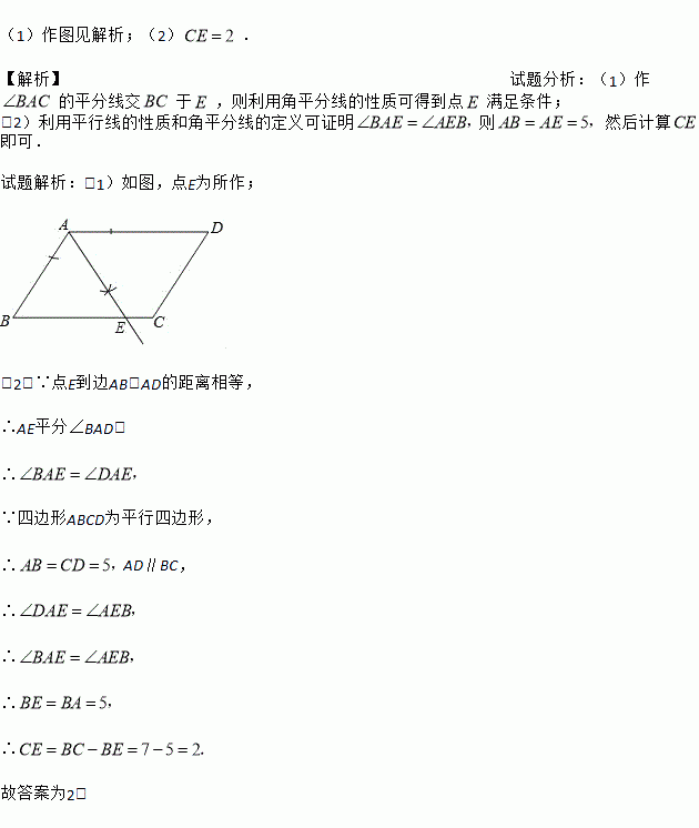 (1)利用尺规作图,在BC边上确定点E,使点E到边AB,AD的距离相等(不写作法,保留作图痕迹);